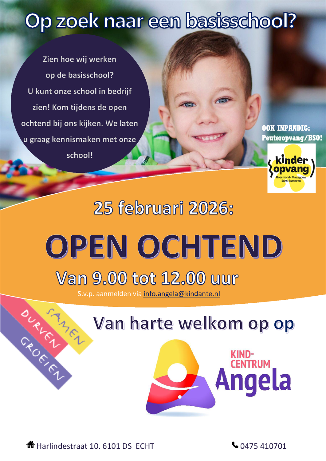 Een paar keer per jaar houden we een open ochtend voor nieuwe ouders, die geïnteresseerd zijn in ons kindcentrum. De ochtend start telkens om 9.00 uur en duurt tot 12.00 uur. De volgende open ochtend vindt plaats op 25 februari 2026. U bent van harte welkom!